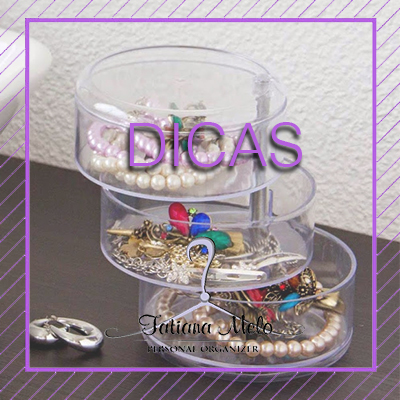 Manter as bijuterias ou jóias organizadas é essencial para não esquecer de nenhum item na produção do look. Sugiro alguns produtos organizadores que auxiliam na visualização e não deixam nenhuma bijuteria esquecida. Para as bijuterias ficarem organizadas o ideal é investir em produtos organizadores que proporcione maior visibilidade das peças, é indicado também separar as peças por categorias e mantê-las sempre organizadas em seu local de escolha, as peças utilizadas com maior frequência devem ficar sempre à mão.