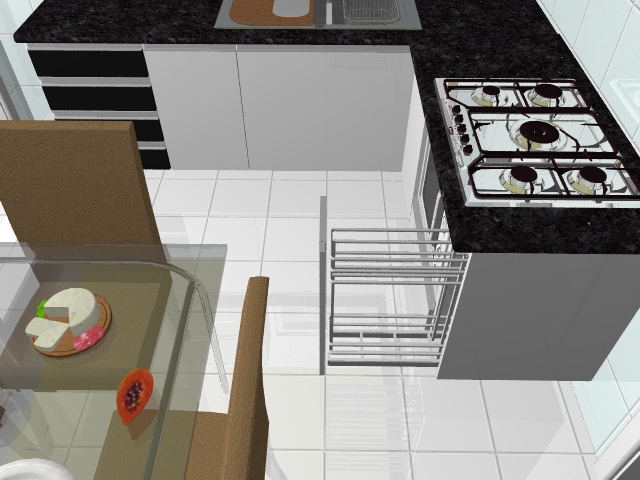 O primeiro passo foi projetar os armários e pensar na melhor forma de ganhar espaço. Contratei um serviço de marcenaria nossa parceira Mobiliar Planejados e a opção de trabalhar com uma bancada em L obedecendo um layout triangular permite eficiência em pequenos espaços. Dê uma olhada na proposta da Mobiliar Planejados.